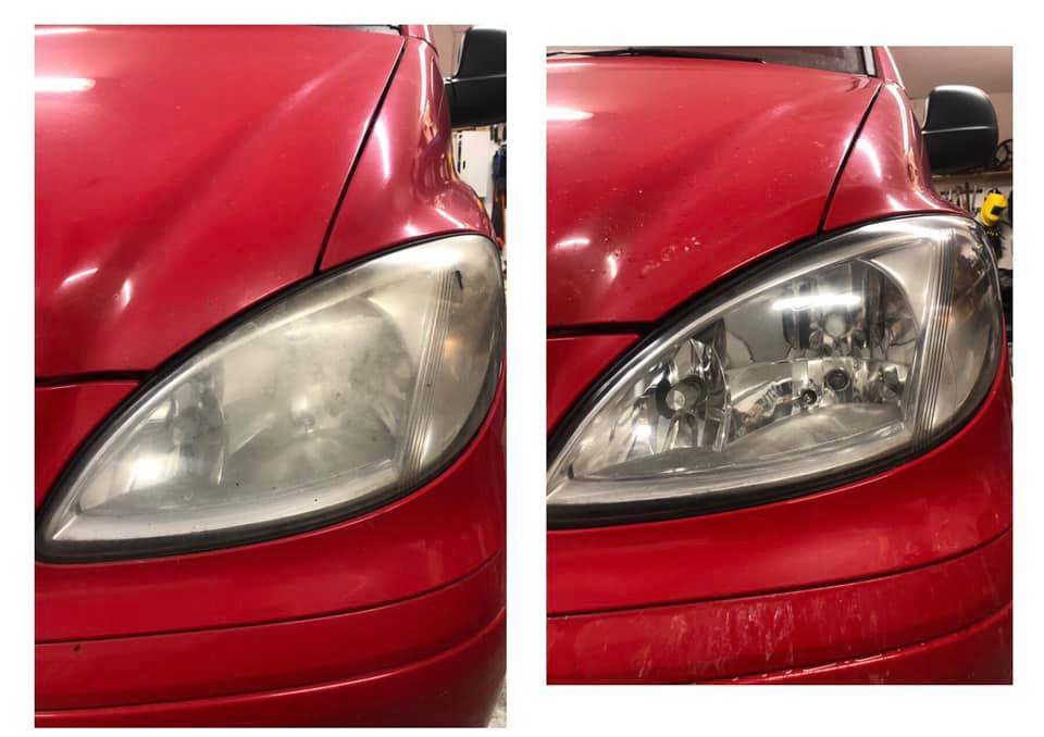 Tässä tehtiin ajovalojen hionta, kiilloutus ja pinnoitus
